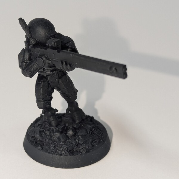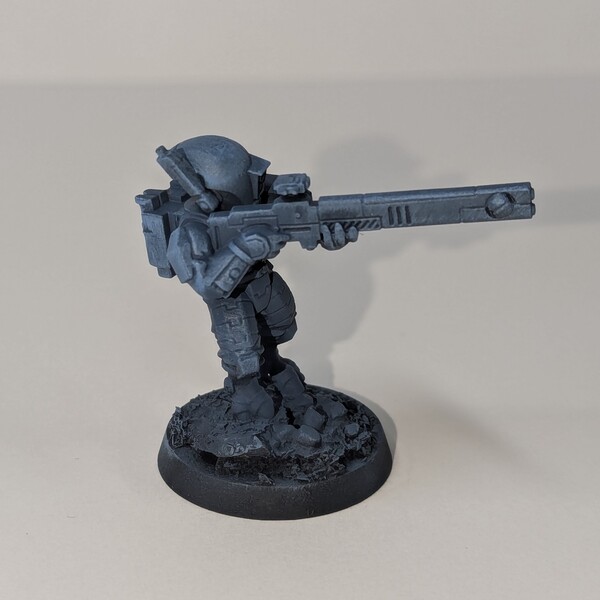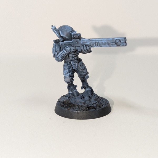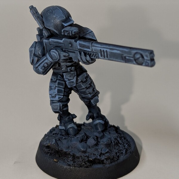 Cover armour panels with Runic Grey or Runic Grey whichever you have, either should work. On flat areas, like the little shoulder pads, encourage the paint to pool towards the lower edge of each face.