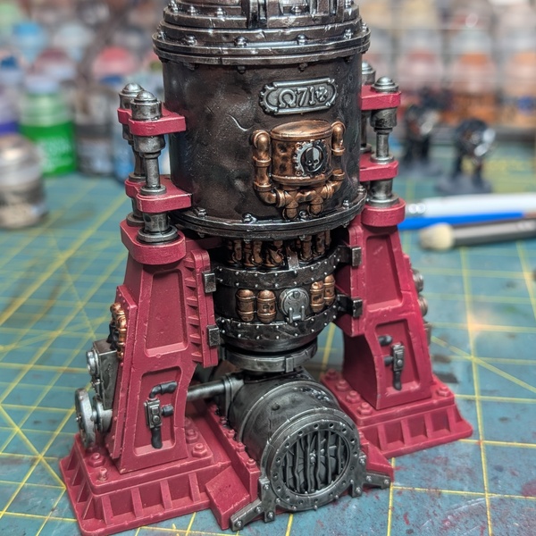 - Block in major metalic details, so the tank and thermopipe at the bottom. The tank gets Rough Iron and the thermopipe with Gun Metal